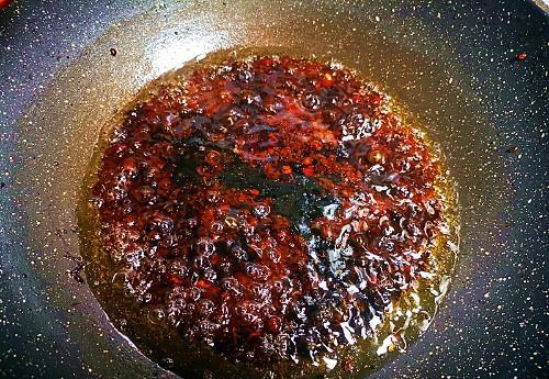 (3)锅中倒入适量食用油,放入葱姜蒜炒香。